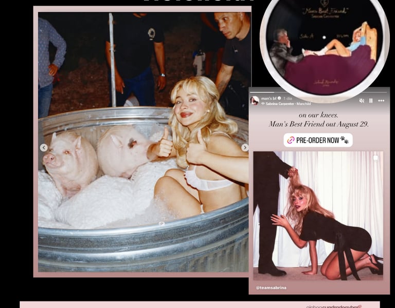 El nuevo disco de la influencer y cantante Sabrina Carpenter, titulado "Short n’ Sweet" —cuya edición especial en vinilo lleva grabado el subtítulo “The Best Friend of a Man” (La mejor amiga del hombre)— es un ejemplo extremo de esta tendencia. Con 47,7 millones de seguidores solo en Instagram, su lanzamiento ha sido acompañado por imágenes de alto contenido simbólico que remiten claramente a la violencia sexual: